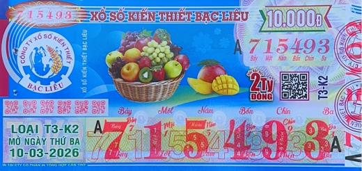 Mẫu vé số Bạc Liêu Ngày 10/03/2026