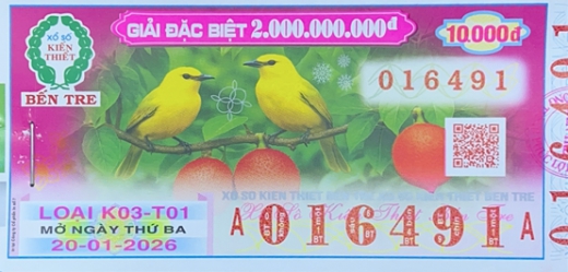 Mẫu vé số Bến Tre Ngày 20/01/2026