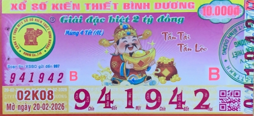 Mẫu vé số Bình Dương Ngày 20/02/2026