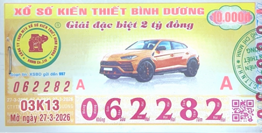 Mẫu vé số Bình Dương Ngày 27/03/2026
