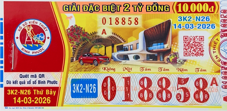 Mẫu vé số Bình Phước Ngày 14/03/2026