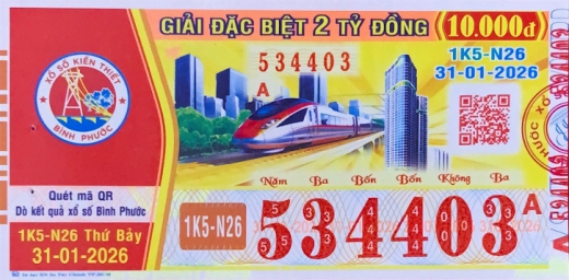 Mẫu vé số Bình Phước Ngày 31/01/2026
