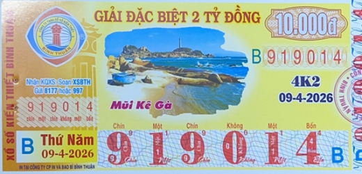 Mẫu vé số Bình Thuận Ngày 09/04/2026