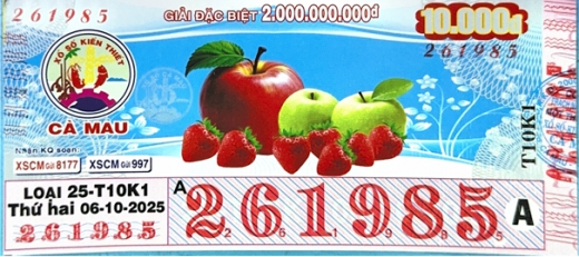 Mẫu vé số Cà Mau Ngày 06/10/2025