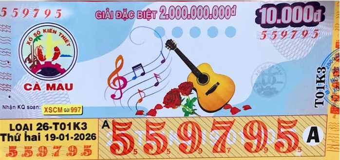 Mẫu vé số Cà Mau Ngày 19/01/2026