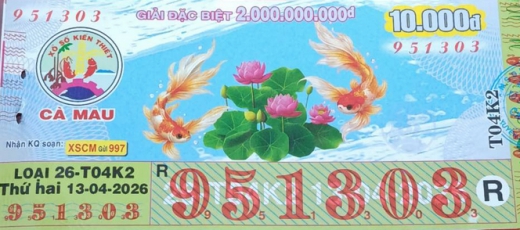 Mẫu vé số Cà Mau Ngày 20/04/2026