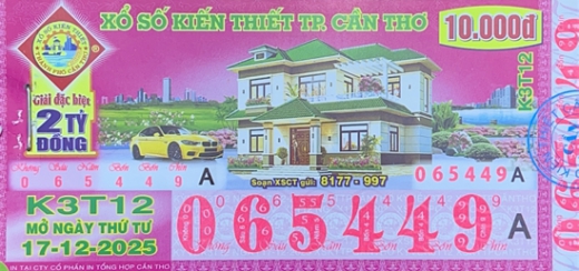 Mẫu vé số Cần Thơ Ngày 17/12/2025