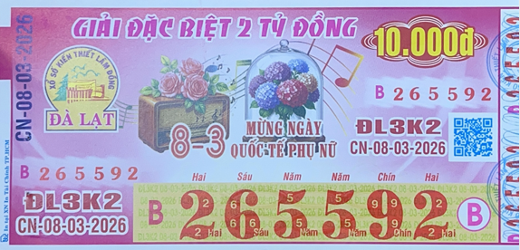 Mẫu vé số Đà Lạt Ngày 08/03/2026
