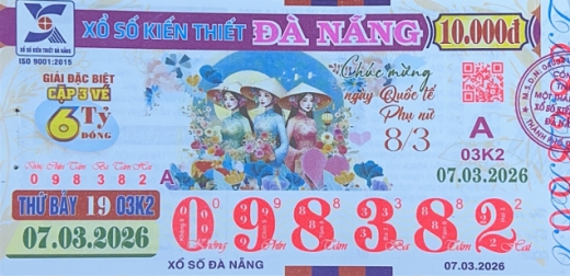 Mẫu vé số Đà Nẵng Ngày 07/03/2026