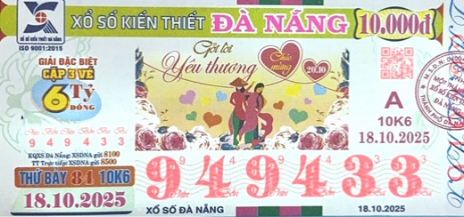 Mẫu vé số Đà Nẵng Ngày 18/10/2025