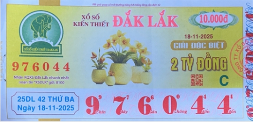 Mẫu vé số Đắk Lắk Ngày 18/11/2025