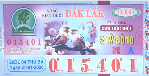 Mẫu vé số Đắk Lắk Ngày 27/01/2026