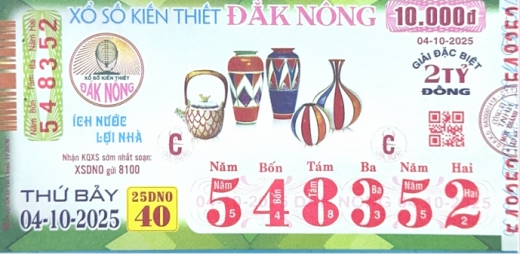 Mẫu vé số Đắk Nông Ngày 04/10/2025