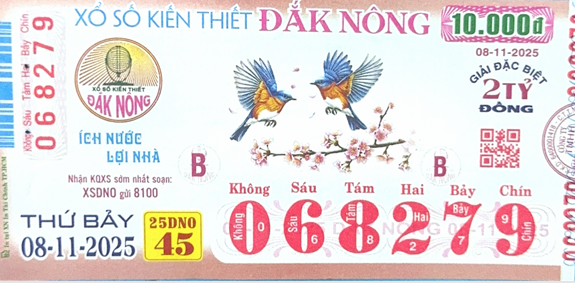 Xổ số Đắk Nông mở thưởng kỳ tiếp theo ngày 15/11/2025