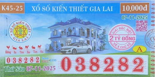 Mẫu vé số Gia Lai Ngày 07/11/2025
