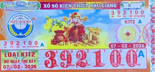 Mẫu vé số Hậu Giang Ngày 07/02/2026