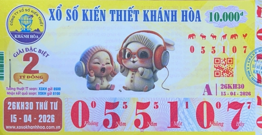 Mẫu vé số Khánh Hòa Ngày 15/04/2026