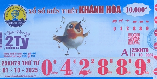 Mẫu vé số Khánh Hòa Ngày 01/10/2025