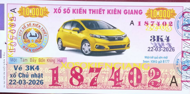 Mẫu vé số Kiên Giang Ngày 22/03/2026
