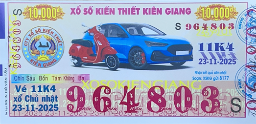 Mẫu vé số Kiên Giang Ngày 23/11/2025