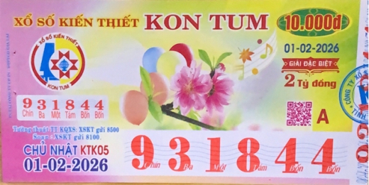 Mẫu vé số Kon Tum Ngày 01/02/2026