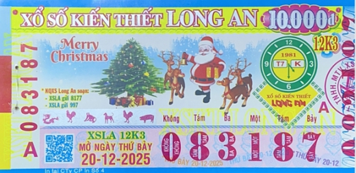 Mẫu vé số Long An Ngày 20/12/2025