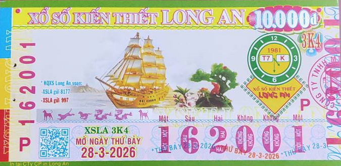 Mẫu vé số Long An Ngày 28/03/2026