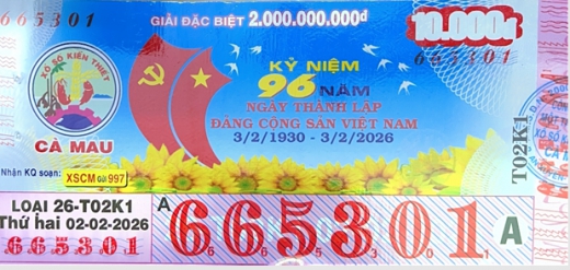 Mẫu vé số Miền Nam Ngày 02/02/2026