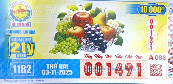 Mẫu vé số Miền Nam Ngày 03/11/2025