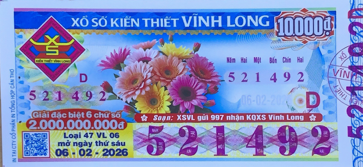 Mẫu vé số Miền Nam Ngày 06/02/2026