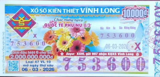 Mẫu vé số Miền Nam Ngày 06/03/2026