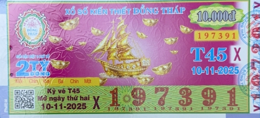 Mẫu vé số Miền Nam Ngày 10/11/2025