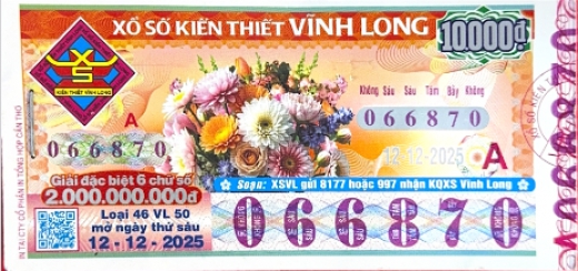 Mẫu vé số Miền Nam Ngày 12/12/2025