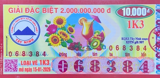 Mẫu vé số Miền Nam Ngày 15/01/2026