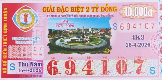 Mẫu vé số Miền Nam Ngày 16/04/2026
