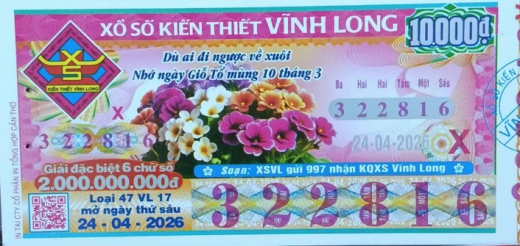 Mẫu vé số Miền Nam Ngày 24/04/2026