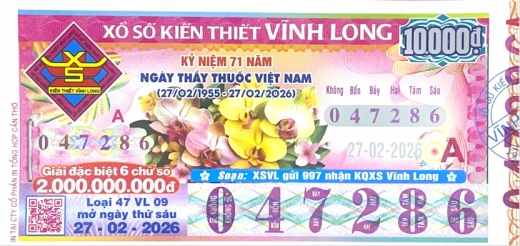 Xổ số miền Nam 21-2: Hai khách tại Vĩnh Long đổi thưởng 48 vé trúng giải