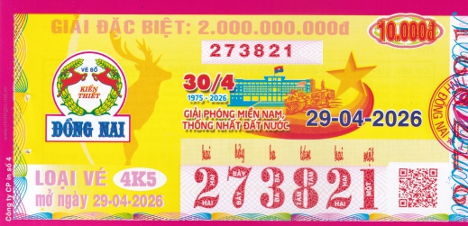 Mẫu vé số Miền Nam Ngày 29/04/2026