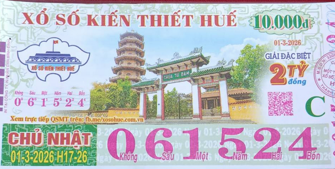 Mẫu vé số Miền Trung Ngày 01/03/2026