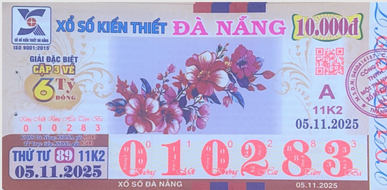 Mẫu vé số Miền Trung Ngày 05/11/2025
