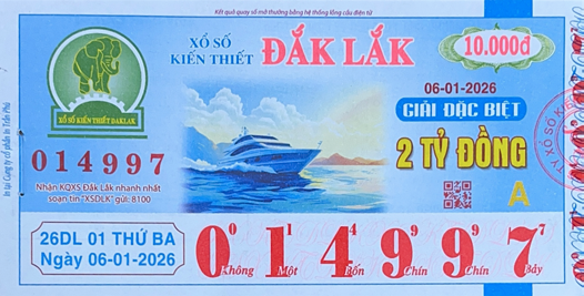 Mẫu vé số Miền Trung Ngày 06/01/2026