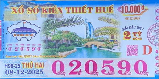 Mẫu vé số Miền Trung Ngày 08/12/2025