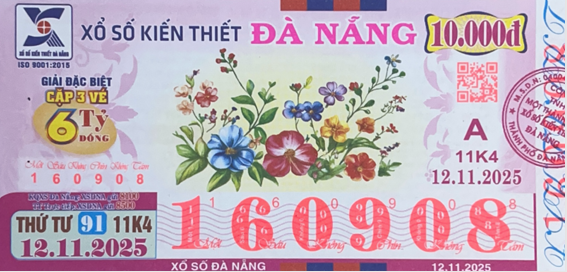 Mẫu vé số Miền Trung Ngày 12/11/2025