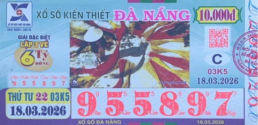 Mẫu vé số Miền Trung Ngày 18/03/2026