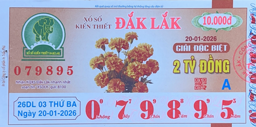 Mẫu vé số Miền Trung Ngày 20/01/2026