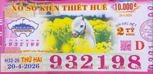 Mẫu vé số Miền Trung Ngày 20/04/2026