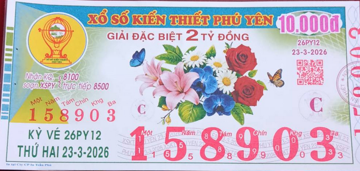 Mẫu vé số Phú Yên Ngày 23/03/2026