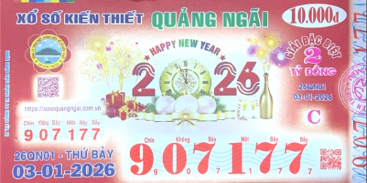 Mẫu vé số Quảng Ngãi Ngày 03/01/2026