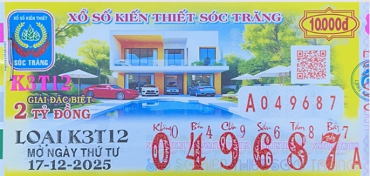Mẫu vé số Sóc Trăng Ngày 17/12/2025