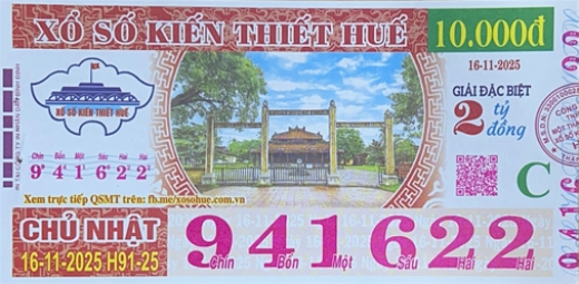Mẫu vé số Thừa T. Huế Ngày 16/11/2025